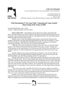 With the official Navajo Treaty of 1868 being unveiled to the public at the Navajo Nation Museum in Window Rock, Arizona, today, Benally also relishes the fact that her Diné family has long lived in the Bears Ears area and has family stories involving their survival of the Long Walk from over 150 years ago. Benally’s Diné ancestors were among the first to move back to the San Juan River area from the Long Walk. However, she recounted that other Diné bands were never captured by the U.S. government. They lived at the confluence of Comb Ridge Wash and the San Juan River.