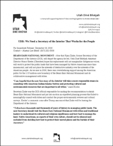 We Need a Secretary of the Interior That Works for the PeopleNews, Press, Press Releases / December 19, 2018 Press Release For Immediate Release: December 19, 2018 Contact – Alastair Lee Bitsóí: (917) 202-8308 Click on the image for the full press release