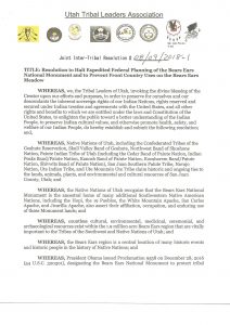 Utah Tribal Leaders Ask BLM to Halt Planning for Bears EarsNews, Press, Press Releases / August 15, 2018 Resolution to Halt Expedited Federal Planning of the Bears Ears National Monument and to Present Front Country Uses on the Bears Ears Meadow Click on the image below to view the full resolution:
